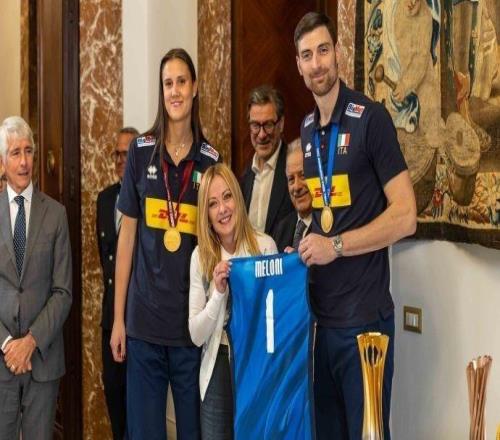 男女排世锦赛冠军意大利队接受总统、总理接见,并赠送球衣